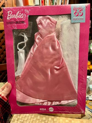 Collezione Enchanted Evening della Barbie Fashion Collection. Un abito da sera rosa in raso con una pelliccia bianca e accessori. - Abito da sera rosa in raso - Pelliccia bianca - Collana di perle - Borsetta bianca