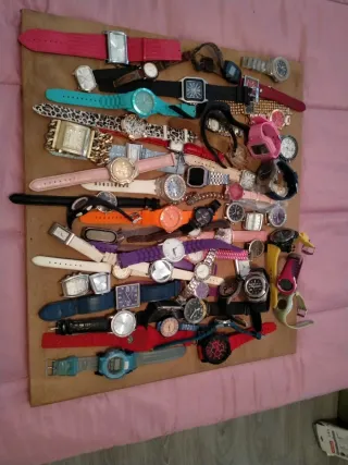 Grande lotto di 62 orologi di stili e colori diversi. Ideale per collezionisti o per chi cerca varietà. Include orologi con cinturini di materiali diversi, design vari per ogni occasione, pezzi unici per completare la tua collezione. Non sono stati controllati, non hanno pile ma sono in buone condizioni da revisionare o per pezzi di ricambio. Nessuna restituzione, prezzo ridotto. Un saluto.