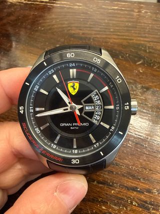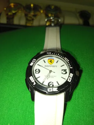 Orologio ufficiale Ferrari Scuderia, con la sua scatola originale. Movimento: Quarzo giapponese. Diametro: ~44 mm. Cristallo: Minerale. Cinturino: Silicone nero con dettaglio rosso Ferrari. Resistenza all'acqua: 3ATM. Include manuale di istruzioni. Era un regalo che non ho mai usato.