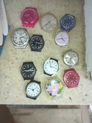 Lott di orologi Swatch, ideali per ottenere pezzi di ricambio o per collezionisti. Varietà di modelli e colori. Design classici e moderni. Funzionano quasi tutti, ma si vendono per pezzi. Se sei interessato, fai un'offerta, metto un euro che non è il prezzo.