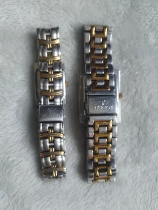 In vendita due orologi del marchio Viceroy, da uomo e da donna. Design elegante con dettagli dorati e argentati. Quadranti rettangolari. Funzionano perfettamente con batteria nuova per entrambi.