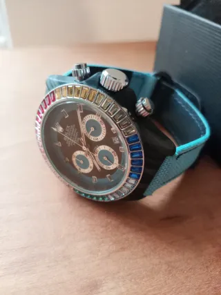 Orologio Invicta da uomo con movimento automatico. Con cinturino di ricambio di eccellente qualità. Funziona con precisione, senza rotture o difetti. Diametro della cassa 42mm. Design elegante e sportivo. Cinturino in acciaio inossidabile. Lunetta girevole. Resistente all'acqua fino a 200 metri.