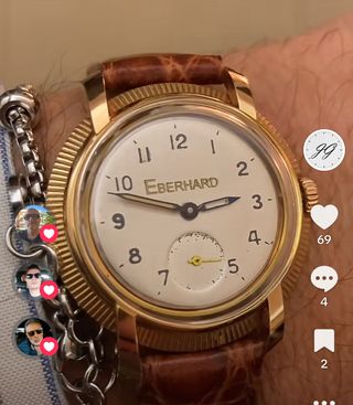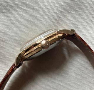 Eberhard vintage da uomo, cassa in oro. Un classico intramontabile. - Quadrante color crema. - Cinturino in pelle marrone. - Movimento a carica manuale.