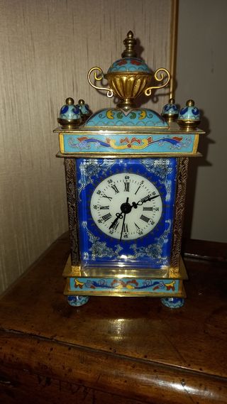 Bellissimo orologio da tavolo, un pezzo unico scolpito a mano. - Design artigianale. - Materiale: ceramica. - Pendolo dorato. - Numeri romani sul quadrante.
