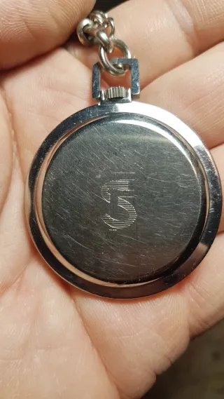 Elegante orologio da taschino Perseo con movimento a 17 rubini. - Cassa in metallo. - Quadrante bianco con numeri arabi. - Lancetta dei secondi ausiliaria. - Catena inclusa.