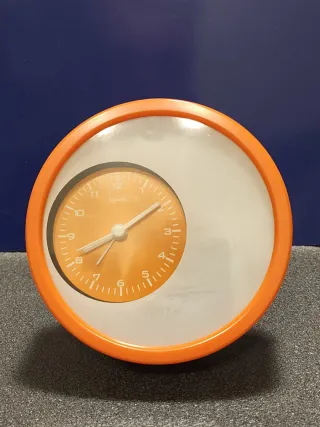 Orologio sveglia dal design moderno e vivace. Città: Bologna. - Colore arancione brillante. - Quadrante con numeri arabi.