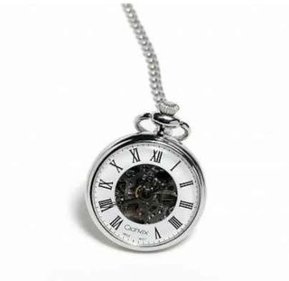 Orologio da tasca movimento a corda in metallo color silver con fondello liscio diametro 44mm. Senza o con coperchio lavorato. Quadrante bianco con numeri romani e sfere nere. Completo di catena in metallo. Orologio autentico, nuovo di fabbrica con etichetta, garanzia 24 mesi e scatola Gianvix.