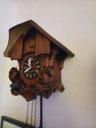 Bellissimo orologio a cucù in legno, un pezzo unico per la tua casa. - Realizzato in legno intagliato. - Design tradizionale. - Dettagli curati.
