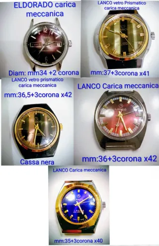 Lotto composto da 5 orologi meccanici composto da 4 Lanco e 1 Eldorado. In perfetto stato e funzionanti,fondi di magazzino,ottimi per collezione.
