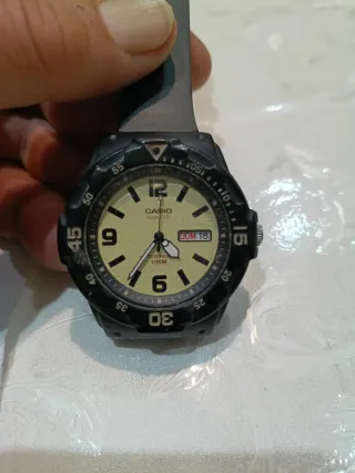 Orologio da polso Casio con movimento al quarzo. - Cassa in resina nera. - Quadrante color crema. - Resistente all'acqua fino a 100 metri perfettamente funzionante diametro cassa 43 escluso corona