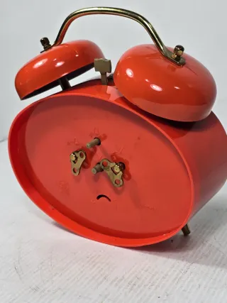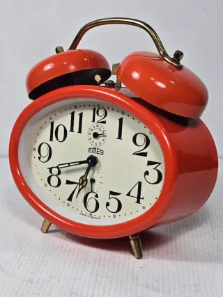 Iconico orologio sveglia Emes, un pezzo da collezione degli anni '70 colore arancio bellissima movimento meccanico - Design vintage a doppia campana. - Colore rosso vivace. - Cassa in metallo. - Made in Germany.
