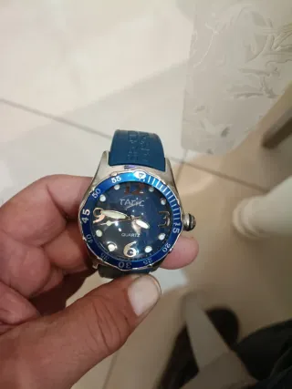 Orologio da polso Tatic con movimento al quarzo e cinturino blu. - Quadrante blu. - Cinturino in gomma blu. Perfetto e funzionante come nuovo diametro cassa 45 escluso corona ghiera girevole