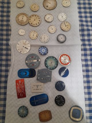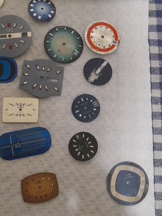 Collezione di quadranti per orologi vintage di diverse marche. Perfetti per riparazioni o per progetti di restauro. - Vari colori e stili. - Ottime condizioni generali, alcuni con lievi segni del tempo. Tutti quelli in foto. Nuovi..... E alcuni usati.... Vedi bene foto....