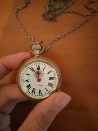 Orologio da tasca a cipolla Wille Freres con carica funzionante e completo di vetro e catenella. Spese a carico dell'acquirente.