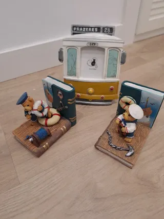 Set di due sostienitori di libri con adorabili orsetti marinai. Dimensioni: 8,5 cm di larghezza x 12 cm di profondità x 10 cm di altezza. Il portafoto è 15 x 17 cm. - Design nautico con dettagli di ancora e timone. - Ogni sostienitore include un orsetto vestito da marinaio. - Base a forma di vecchio libro.