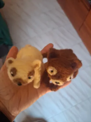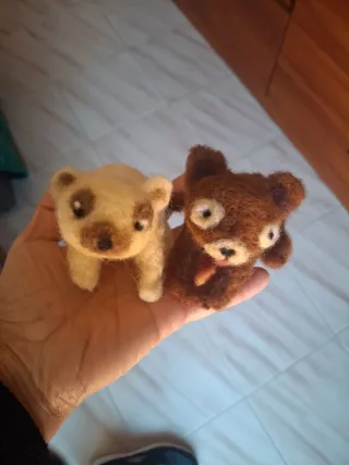 Adorabile coppia di orsetti di peluche, realizzati a mano con feltro. - Un orsetto è di colore crema con dettagli marroni. - L'altro orsetto è di colore marrone con dettagli in rosa e arancione. Consegna a mano a Barcellona o a Osona o spedizione tramite posta o Wallapop