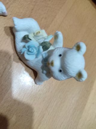coppia di orsetti in ceramica vintage con fiori in Capodimonte, che assumono pose, in ottime condizioni.
