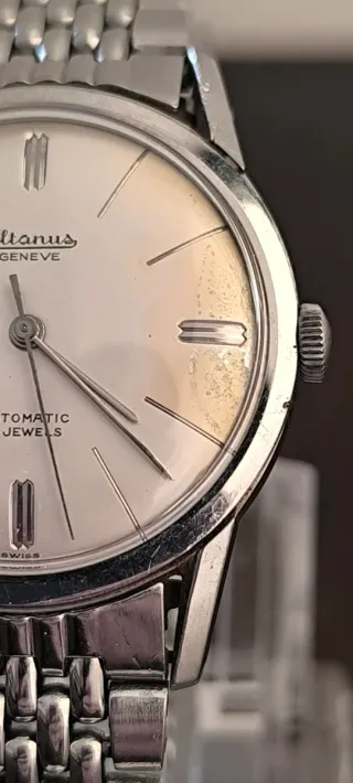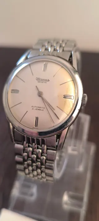 Propongo questo bellissimo ed elegante altanus automatico funzionante, completo di bracciale. Condizioni come in foto.Presenta delle piccole lesioni sulla cassa, Quadrante macchiato lato corona il restante è perfetto.Misura cassa:34MM.esclusa corona. Altre Maglie del bracciale smontate