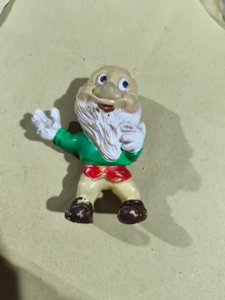 Set di due personaggi vintage degli anni '70. - Personaggio di Mammolo della Ledra con barba bianca e abiti verdi e rossi. - Personaggio di Paperino della Lovely con cappello verde, camicia arancione e papillon rosso.
