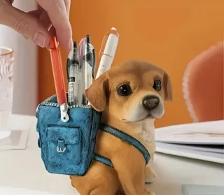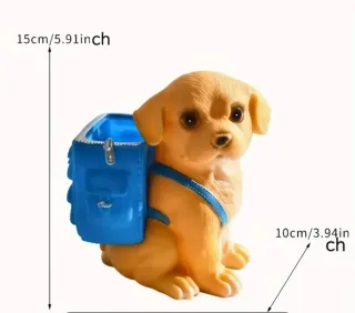 Originale portapenne a forma di cagnolino con zainetto blu. Perfetto per organizzare la scrivania. - Design a forma di cane. - Zainetto blu decorato. - Ideale per penne e matite.E'anche un salvadanaio