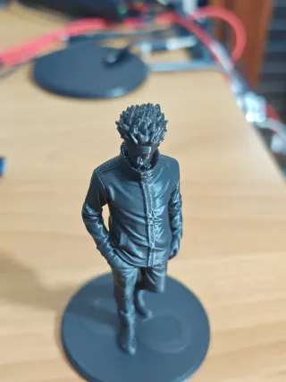 Vendo bellissima figure di Satoru Gojo, l'iconico stregone di Jujutsu Kaisen, realizzata tramite stampa 3D di alta qualità. Il pezzo presenta una finitura nera satinata che mette in risalto i dettagli del design e delle pieghe dei vestiti. H 12cm disponibili in varie misure e colori