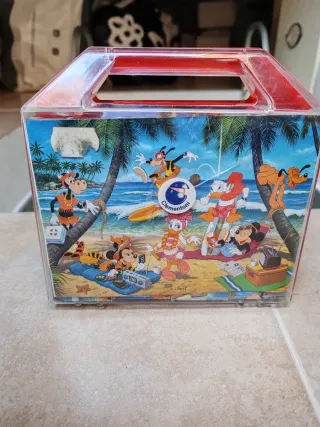 Puzzle cubico vintage con personaggi Disney Clementoni. Un divertente gioco per i più piccoli. - Illustrazione a tema spiaggia con personaggi classici Disney. - Marchio Clementoni. - Design cubico.