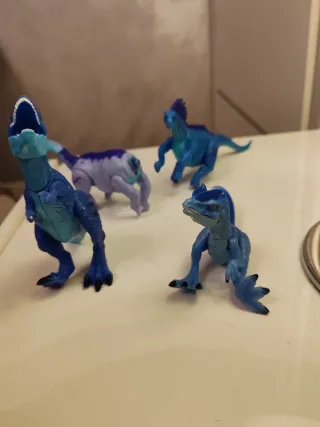 Set di 4 dinosauri in diverse tonalità di blu e azzurro. Il lotto include un T-Rex con mascella mobile, un raptor e altri due dinosauri erbivori/predatori. Ideali per bambini appassionati di preistoria o per piccoli collezionisti. Stato: Usati, in buone condizioni come da foto. Materiale: Plastica rigida resistente. Dettagli: Colori vivaci, ottimi per il gioco creativo o decorazione cameretta #dinosauri #dinosaurigocattolo #toys #trex #raptor #giochibambini #collezionismo #preistoria #actionfigures #lottogiochi #dinosaurs #bluetoys