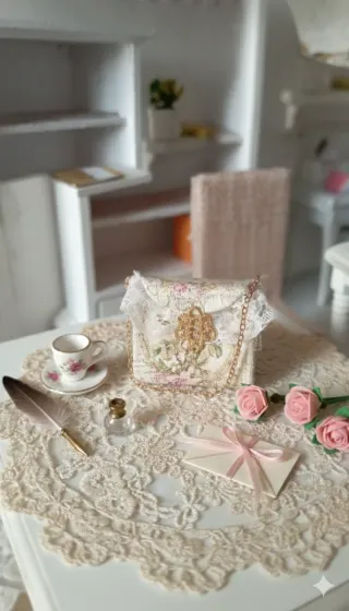 Bolso Victoriano Miniatura 1:12 - Rosas y Encaje