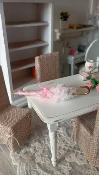 Completa tu colección con esta refinada sombrilla de encaje para casa de muñecas (escala 1:12). Un accesorio imprescindible para una dama victoriana, realizado con delicado encaje blanco y detalles románticos. Estado impecable, como nuevo. Perfecta para decorar un recibidor, un dormitorio de época o para acompañar a tus muñecas en un paseo imaginario. Una pieza de gran realismo y encanto nostálgico. ✨🌹 Raffinato ombrellino parasole in miniatura scala 1:12. Realizzato in pizzo bianco con dettagli curati, ideale per ambientazioni vittoriane. Condizioni pari al nuovo, un vero gioiello per collezionisti. 🎀
