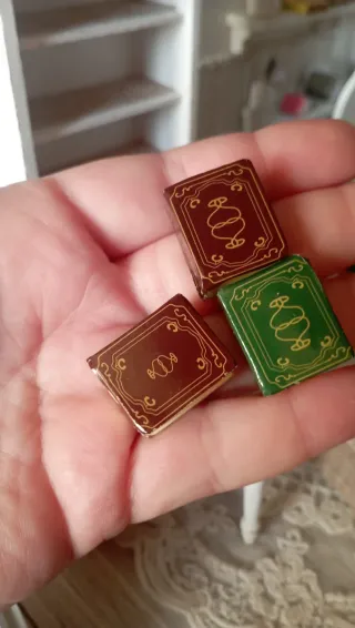 Añade cultura y elegancia a tu casa de muñecas con este set de 3 libros antiguos (escala 1:12). Con cubiertas en colores clásicos (verde y burdeos) y refinados detalles dorados en el lomo y la portada. Estado impecable, como nuevos. Ideales para colocar en estanterías, escritorios o mesas de salón, aportando un toque realista y distinguido a cualquier ambiente de época. Una pieza esencial para coleccionistas de miniaturas. ✨📚 Set di 3 libri antichi in miniatura scala 1:12. Copertine rigide con fregi dorati, perfetti per librerie o studi vittoriani. Condizioni pari al nuovo. 🏛️