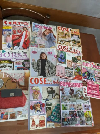 Lotto di riviste dedicate al cucito, maglia, borse e bomboniere. - Cucito a macchina - Susanna Solobimbi - Cose Belle - Speciale Arm Knitting - Crea la tua Borsa - Cose per la casa - Bomboniere - Cucito e idee per la casa