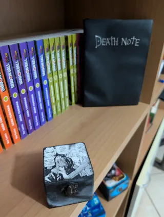 Piccolo cofanetto in legno decorato con immagini a tema Death Note. - Design ispirato al manga/anime. - Chiusura a scatto metallica. Piccolo dimensioni 5 cm di larghezza ,da esposizione