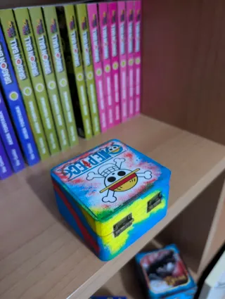 Cofanetto decorato a tema One Piece. - Coperchio con stampa del logo e del teschio. - Base blu con dettagli colorati. - Chiusura a lucchetto. Dimensioni 8 cm