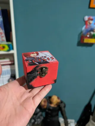 Piccolo cofanetto in legno decorato con l'iconica immagine di Soul Reaver. - Design ispirato al videogioco. - Materiale: legno. Dimensioni 5 cm di larghezza. Essendo piccolo potete inserire piccoli oggettini in miniatura ,o ad esempio monetine,collane molto sottili,o lasciarlo semplicemente da esposizione