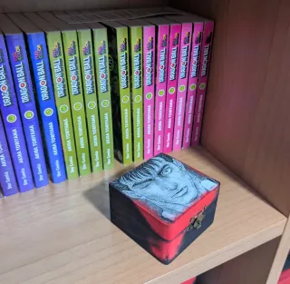 Cofanetto in legno decorato con un disegno (immagine) ispirato a Berserk. - Materiale: Legno. - Design: Illustrazione a tema Berserk. Tecnica decoupage Accetto proposte di acquisto