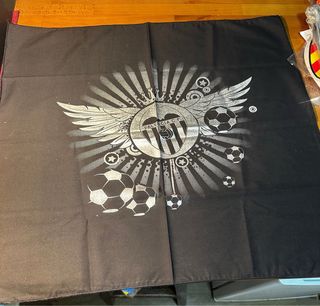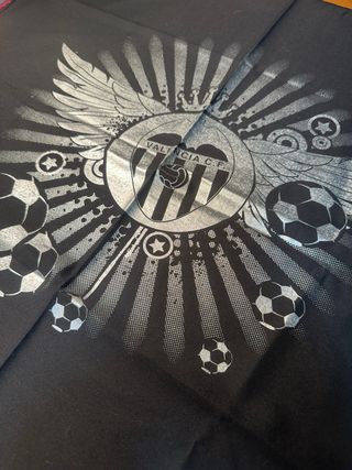 Sciarpa con design del Valencia Club de Fútbol. Designo con lo stemma del club. Motivi di palloni da calcio e ali. Colori argentati su sfondo nero.