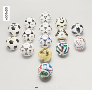 Set di mini palloni da calcio Adidas che ripercorrono la storia dei Mondiali. - Pallone Telstar 1970 - Pallone Telstar 1974 - Pallone Tango Riverplate 1978 - Pallone Espana 1982 - Pallone Azteca 1986 - Pallone Etrusco Unico 1990 - Pallone Questra 1998 - Pallone Tricolore 1998 - Pallone Fevernova 2002 - Pallone Teamgeist 2006