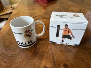 Tazza commemorativa del Real Madrid, con l'immagine del portiere Iker Casillas. - Prodotto ufficiale del Real Madrid. - Design con Iker Casillas e palloni da calcio. - Ideale per collezionisti e tifosi del club.