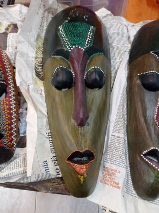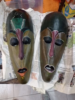 coppia di maschere in legno dipinta a mano 50x18