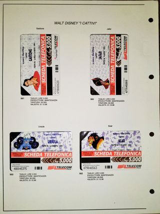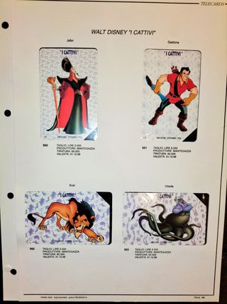 Schede telefoniche da collezione. Walt Disney " I CATTIVI". Serie completa ( Nr. 4 schede ). Condizioni oggetti come da fotografie allegate. Il prezzo riportato sì intende per tutto il lotto. FD 864.