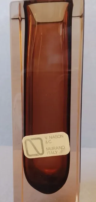 Elegante vasetto in vetro di Murano, risalente agli anni '70. - Design iconico della collezione Nason. - Finitura ambrata. - Etichetta originale Nason Murano presente, Vasetto V. Nason & C. Murano anni 70 tre piccole sbeccature di 2 millimetri se volete vi giro altre foto e video oppure possibile visione senza impegno a Parabiago o Garbagnate Milanese misura 15x4,5x4,5 cm. Peso 500 grammi visto e piaciuto ti arriva quello in foto spedizione solo in Europa