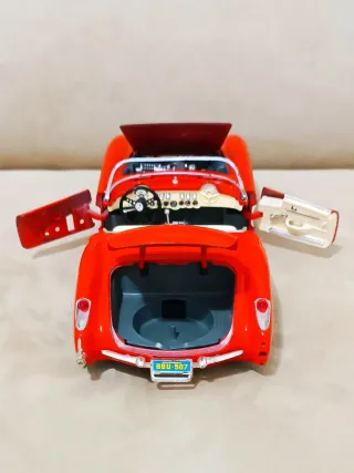 Chevrolet Corvette 1957 Bburago 1/18 - Originale Made in Italy In scala 1/18, con carrozzeria in metallo pesante (die-cast) e interni color crema. Ideale per collezionisti, amanti del restauro o come fonte di ricambi originali. STATO DEL MODELLO: Il pezzo è usato e presenta segni del tempo. Mancano la ruota di scorta nel bagagliaio e le lenti trasparenti dei fari anteriori. Le cromature di parabrezza e paraurti mostrano usura (vedi foto). Meccanica funzionante: porte, cofano e bagagliaio apribili; sterzo attivo. #Bburago #Corvette #Modellismo #118Scale #MadeInItaly #Restauro