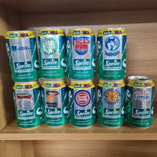 Set di lattine Sprite NBA da collezione, vuote. - Serie speciale NBA. - Design con squadre NBA. - Prodotto da The Coca-Cola Company.