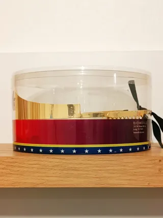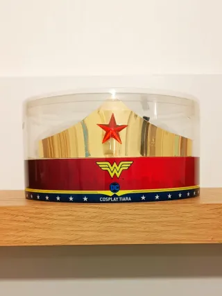Tiara oficial de Wonder Woman con licencia original de DC Comics y Warner Bros, fabricada por Bioworld. Estado: Nueva, nunca usada. Se entrega en su caja cilíndrica original de colección. Material: Plástico rígido (ABS) de alta calidad con acabado dorado espejo muy brillante y realista. Ajuste: Incluye peines laterales y cinta negra ajustable para una sujeción perfecta. Ideal para cosplay profesional, Halloween o como artículo de exposición para fans de la Liga de la Justicia. ¡Pieza de colección impecable! #WonderWoman #DCComics #Cosplay #Bioworld #JusticeLeague #Amazon #Tiara