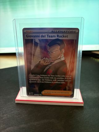 Carta Allenatore Giovanni del Team Rocket dal gioco di carte collezionabili Pokémon. L’articolo comprende anche il supporto per sleeve in foto. - Testo in italiano.
