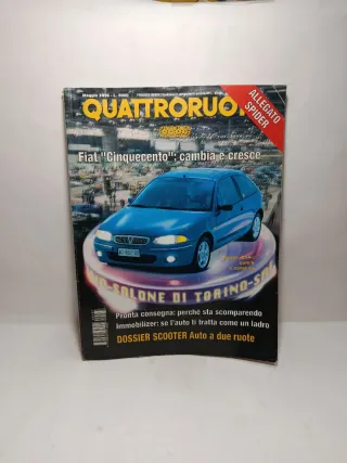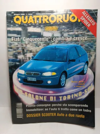 Rivista automobilistica Quattroruote numero 487, datata Maggio 1996. - Copertina con Fiat Cinquecento. - Articolo Allegato Spider. - Servizio sul Salone di Torino. - Approfondimento su Immobilizer: se l'auto ti tratta come un ladro. - Dossier Scooter Auto a due ruote. 🛍️ Acquisti multipli? Risparmia subito! Se sei interessato a più articoli della mia bacheca, contattami prima dell'acquisto! Creerò per te un set personalizzato con: 📦 Unica spedizione (risparmi sui costi di invio). 🏷️ Sconto immediato del 10% sul totale del tuo ordine. 🚫 Non accetto offerte per importi così piccoli.
