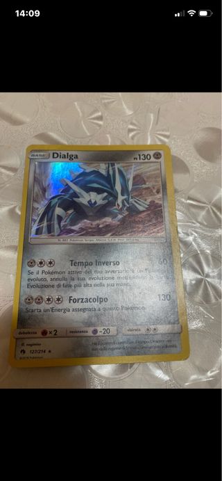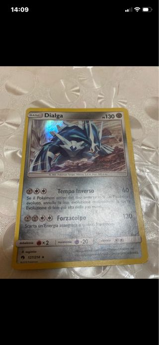 Carta Pokémon di Dialga in ottime condizioni. - Base Set - HP 130 - Attacco: Tempo Inverso (60) - Attacco: Forzacolpo (130) - Debolezza: Fuoco x2 - Resistenza: Psico -20 - Numero carta: 127/214