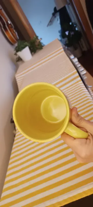 Vintage. Tazza Mug della Mulino Bianco, in ceramica. Come nuova. Ha un lieve difetto di fabbrica: una piccola macchia di colore arancione sul manico. Ottime condizioni. Misure e dettagli in foto. Guardarle tutte. - Colore giallo tenue.