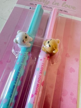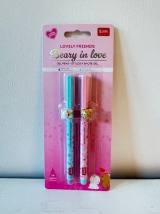 Set 2 penne Legami Lovely Friends San Valentino 2025 limited edition "Beary in love" Penne nella loro confezione originale - Design a tema San Valentino con orsetti. - Inchiostro gel viola e blu. - Punta da 0.5 mm.