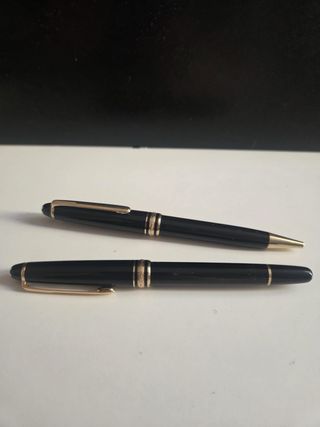 Set di due penne della marca Montblanc. Include le loro confezioni originali e certificato di servizio internazionale. - Trattativa diretta, consegna personale. Non effettuo spedizioni. 1- Penna nera modello Meisterstück, classico, nuovo con dettagli dorati. 1- Penna nera modello Scenium Slim Nero opaco. - Penne nere con incisioni dorate Servizio G.